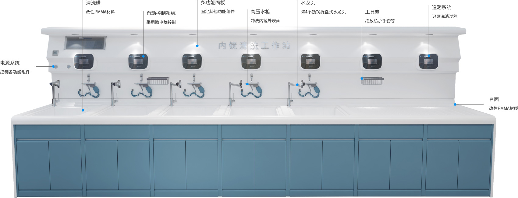 高品质的材料与工艺 新款/新外观内镜清洗工作站外观美观、典雅、功能强、配置齐为一体的人性化设置;多槽分级及干燥台分段控制,全镜浸泡清洗,整个过程流水化,层级分明互不干扰;材质采用高分子一次性压模成型,具有良好的抗冲击效果,无缝角、耐酸碱、抗氧化,具备表面平滑光泽,易清洗等特点。 订购热线:184-5166-1555